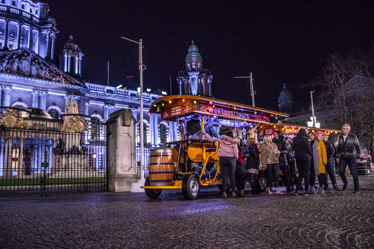 Cruise the bustling streets of Belfast City Centre. From Royal Avenue to Cornmarket, pedal past City Hall to the Opera House, we invite you to soak up the atmosphere and toast your pedal partners in your own bespoke tour. Sneak a stop in at Kelly’s Cellars, The Monico or maybe Robinsons, and find out what makes our city small but mighty.