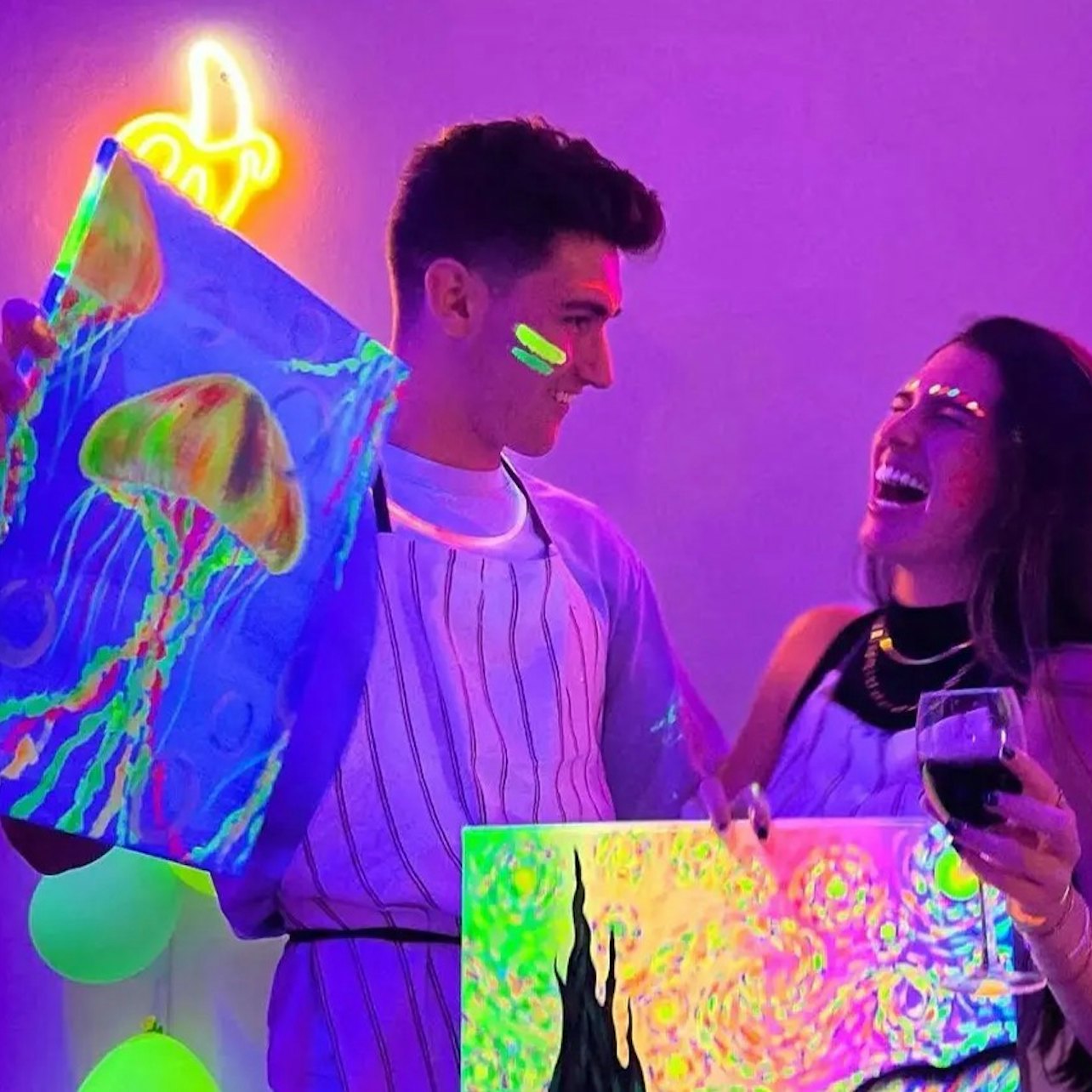 Valencia: Wine Gogh Glow Academy Guided Painting & Wine Workshop