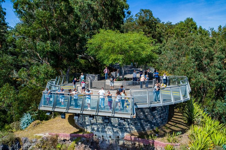Starting with the fiels cultivated at Ribeira da Alforra, you will find a wide variety of vegetables, fruits and banana plants. Then one of the highlights of this tour, walk on the skywalk glass floor at Cabo Girão sea cliff . Great scenery from this viewpoint at 580 meters high. Then off the beaten tracks passing at the forest to the viewpoints Boca da Corrida and Boca dos Namorados, with a stunning view over Curral das Freiras, Eira do Serrado, the central massif peaks of Madeira.