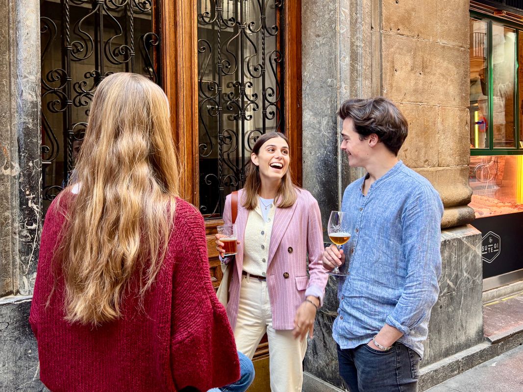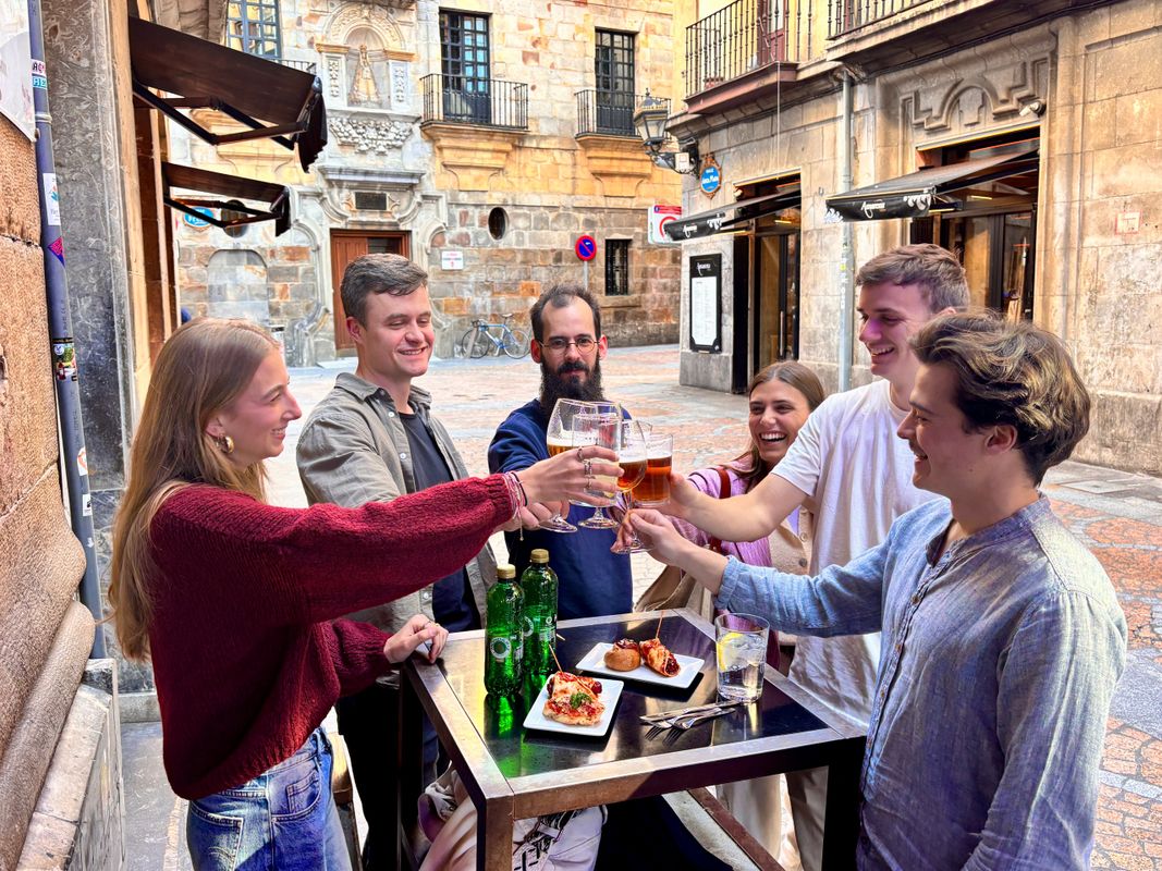 During the three hours that the experience lasts, we will visit La Ribera Market, we will go through the narrow streets of the Old Town stopping at the most emblematic bars, and we will end in the Ensanche. Throughout the tour we will taste four pintxos , three drinks and get to know the local environment more closely