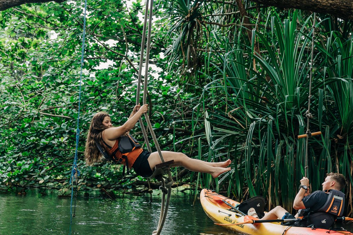 The valley you will kayak in is a rain forest and has all sorts of hiking trails and rope swings. It's one of our favorite locations on the island. The whole area is surrounded by epic mountains. It's a cool place.