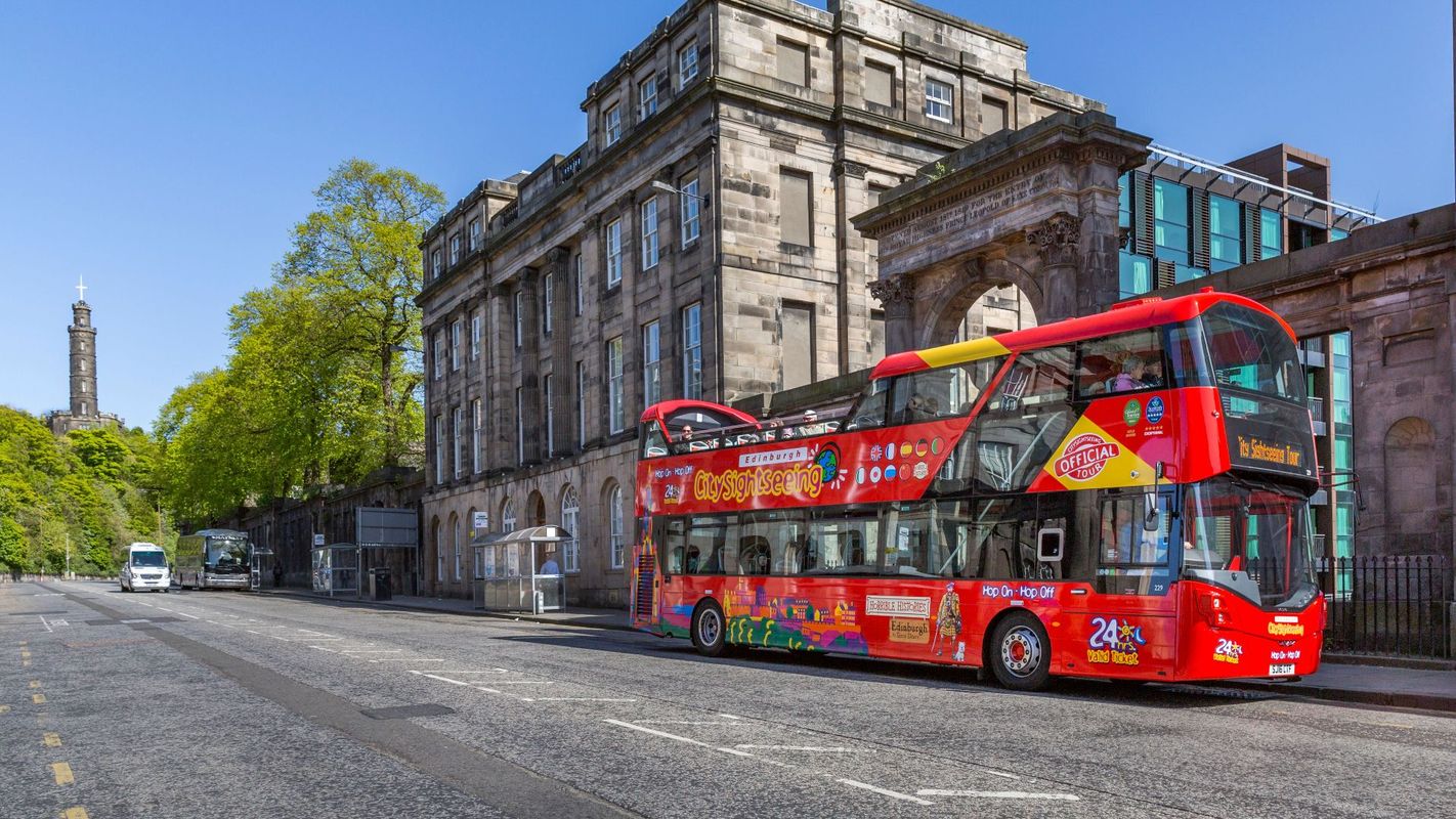 Get ready to discover Edinburgh in a unique way. Sit back and enjoy the sights on City Sightseeing's double decker buses. The red route stops at all the major landmarks so you won't miss a thing. Book a 24-hour ticket and get the most of your trip to Edinburgh. The adventure begins at St Andrew Square, in Edinburgh New Town. The tour heads to Lothian Road, where you will find important artistic venues such as The Usher Hall or the Royal Lyceum. Make a stop at Grassmarket, the historic market in Edinburgh's Old Town. It used to be a market for the sale of horse and cattle. From here you can see Edinburgh Castle, a must-see monument on your visit! The castle is built on volcanic rock and is one of Scotland's most visited monuments. From the castle there are incredible views of the whole city. Hop off at Lawnmarket, in one of the sections of the Royal Mile, Edinburgh's most important street. This area was popular for the linen market. Don’t forget to visit St Giles Cathedral in your visit to this area. On boar the buses you can also visit de Holyrood Palace, at the end of the Royal Mile. It’s the residence of the Queen of England when she comes to Scotland. Inside you can see the royal residence, as well as what remains of the abbey. From here you will have one of the most iconic views of Edinburgh. Come and enjoy a beautiful sunset from the hill. From here you can see New Town, Old Town and Edinburgh Castle, the best at a glance! Calton Hill is also home to a number of interesting monuments such as The National Monument, reminiscent of the Parthenon in Athens; the Dugald Stewart Monument, from where postcard pictures of Edinburgh are taken; and The Nelson Monument at the top of the hill. Book with City Sightseeing for the ultimate Edinburgh experience. Access this complete route and get the best of the city with just one ticket.