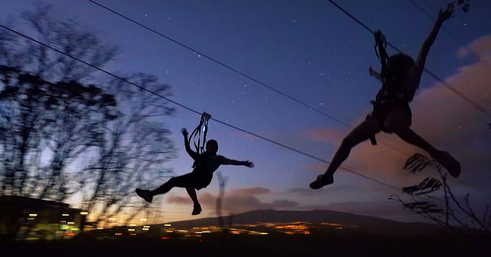 As the sun dips in the Western O’ahu sky, get ready for an after-dark zipline adventure! Zoom through the starlit night on three exhilarating ziplines, from 300 to 1000 feet long, surrounded by the mysterious sounds of the jungle.