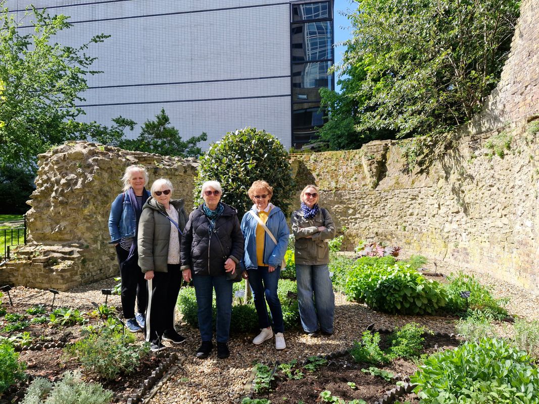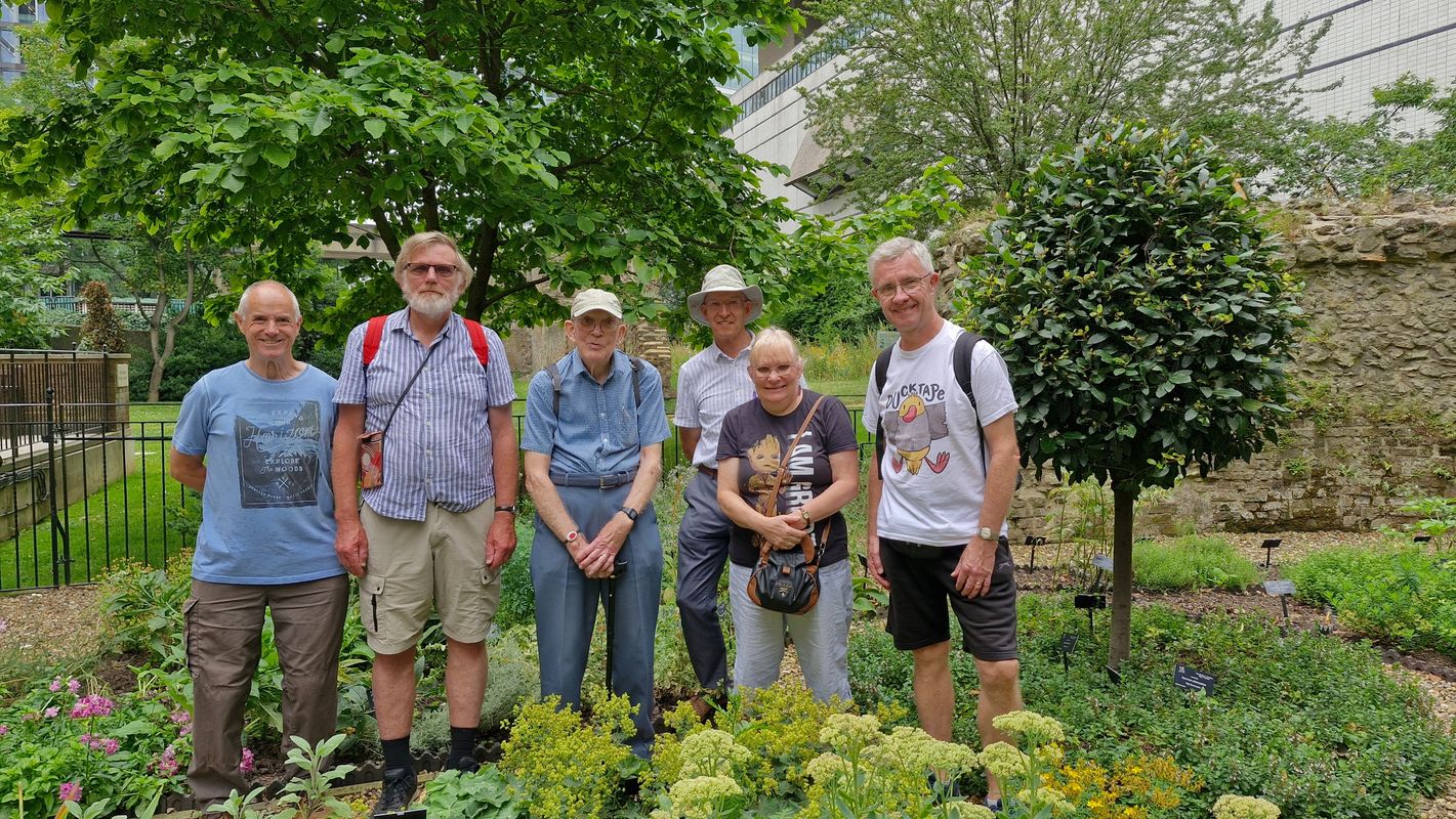 "We were lucky that it had stopped raining and arrived to find a number of like minded people assembled near the London Wall. Although I have lived in London on and off for 50 years I have never before been to the parts in the City where the vestiges of Roman walls remain or for that matter any of the gardens and bombed out monasteries.