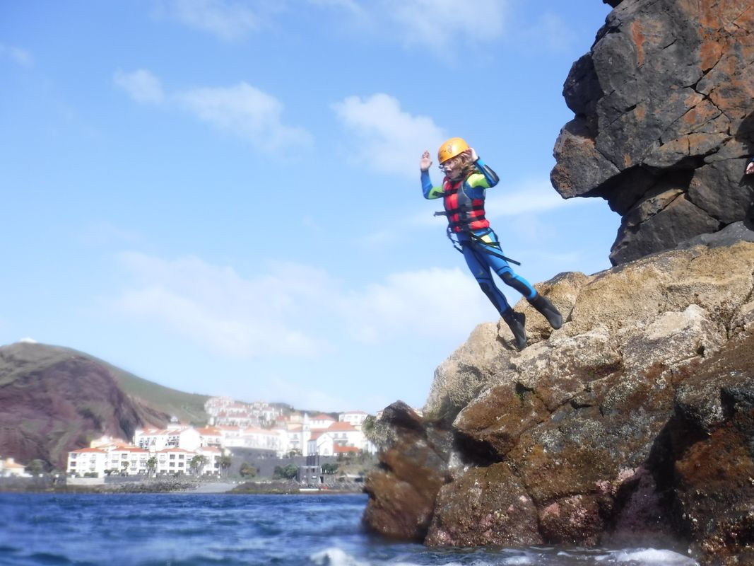 The captivating adventure unfolds on the southeast coast of Madeira, more precisely in the stunning natural park of Baia d’Abra (Caniçal). The cliff jumps, which are completely optional, vary in heights from 1 to 10 metres, catering to various thrill levels. This experience is open to anyone, from families to groups or solo participants of all ages, as long as they can swim.