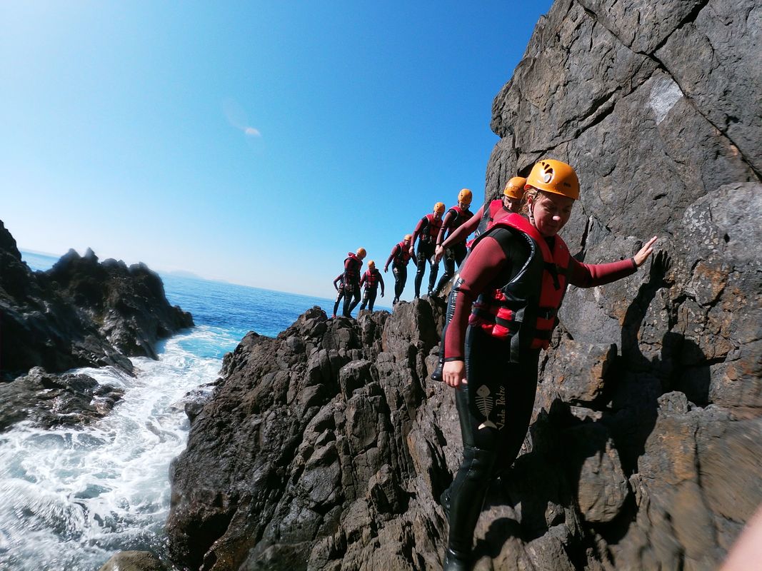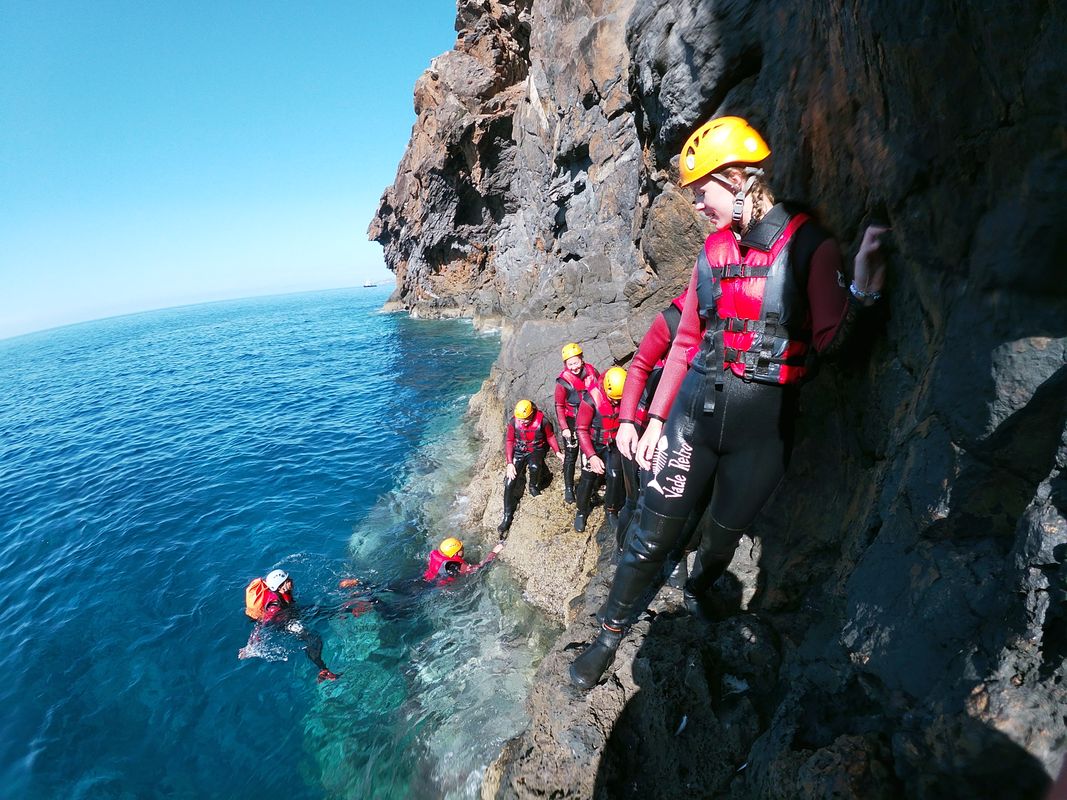 Coasteering is a sports activity that allows one to progress along the coast, whether this is a beach or a cliff, making use of swimming, diving, snorkellinCoasteering is an exhilarating sport that lets you explore the coastline in the most adventurous way possible, whether you’re traversing beaches or cliffs. The activities include swimming, diving, snorkeling, climbing, caving, and even the thrilling experience of cliff-jumping into the water.g, climbing, going through caves or tunnels or jumping into the water.