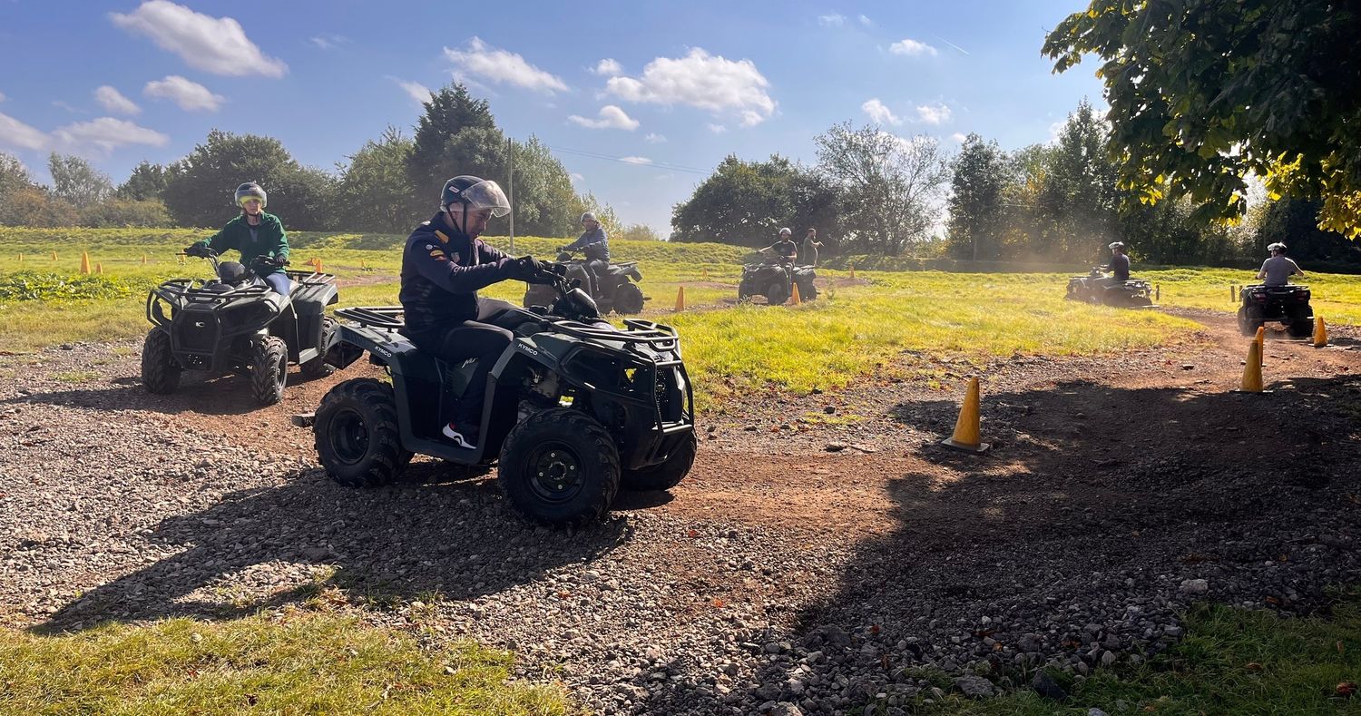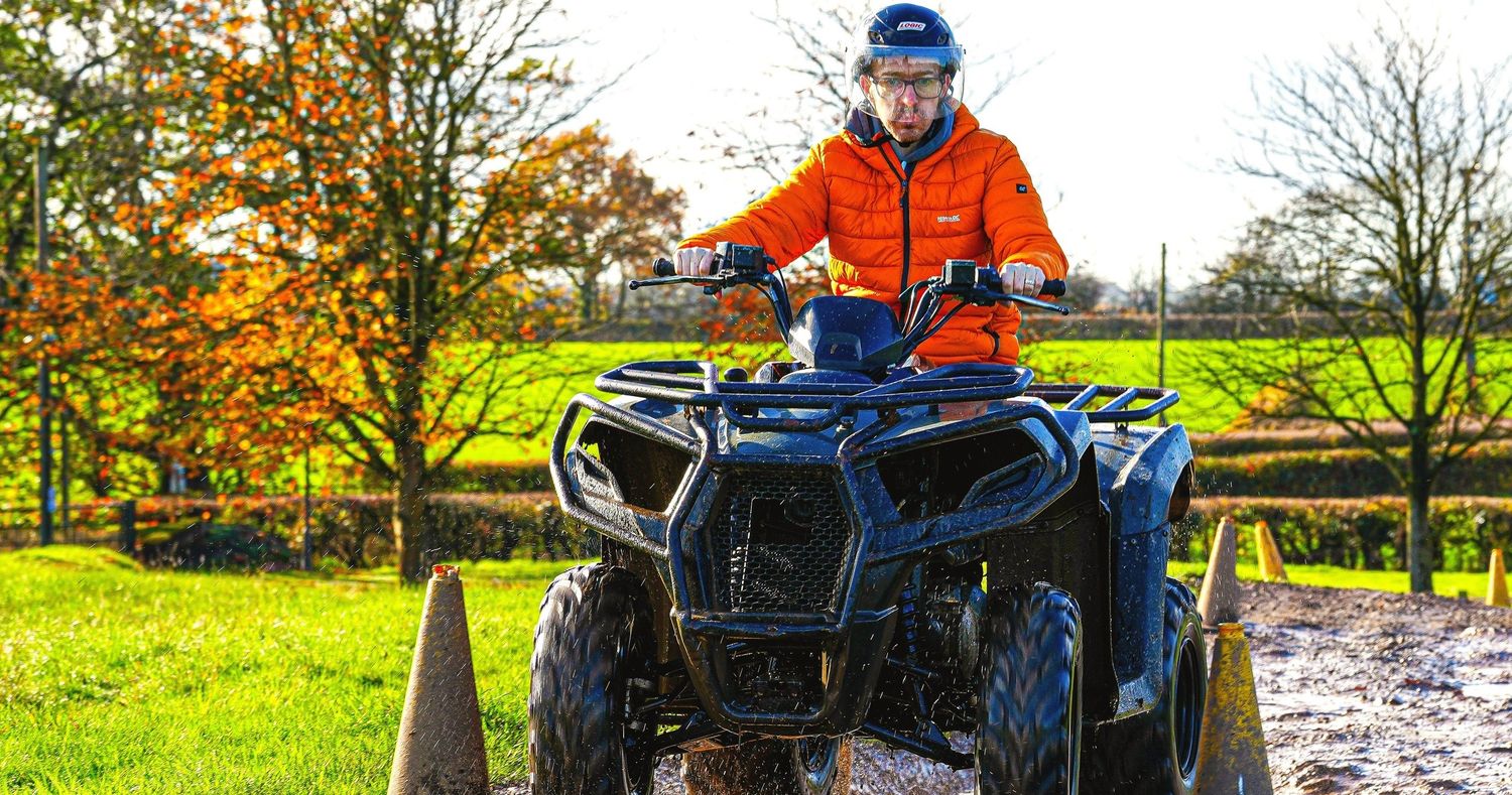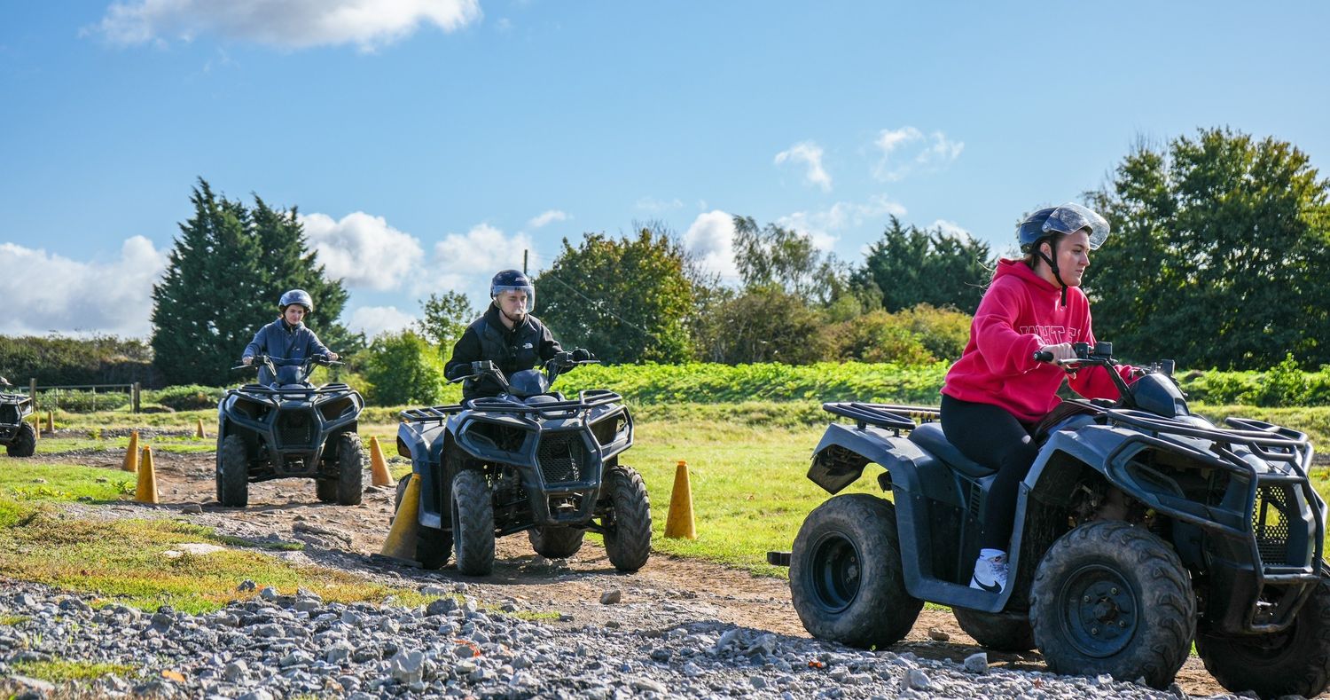 Experience the thrill of riding our powerful all-terrain quad bikes across 100 acres of varied and challenging countryside. Your trek will take you over steep hills, through open grassland, along woodland trails and, when the weather allows, across water splashes and through plenty of mud for that extra dose of excitement!