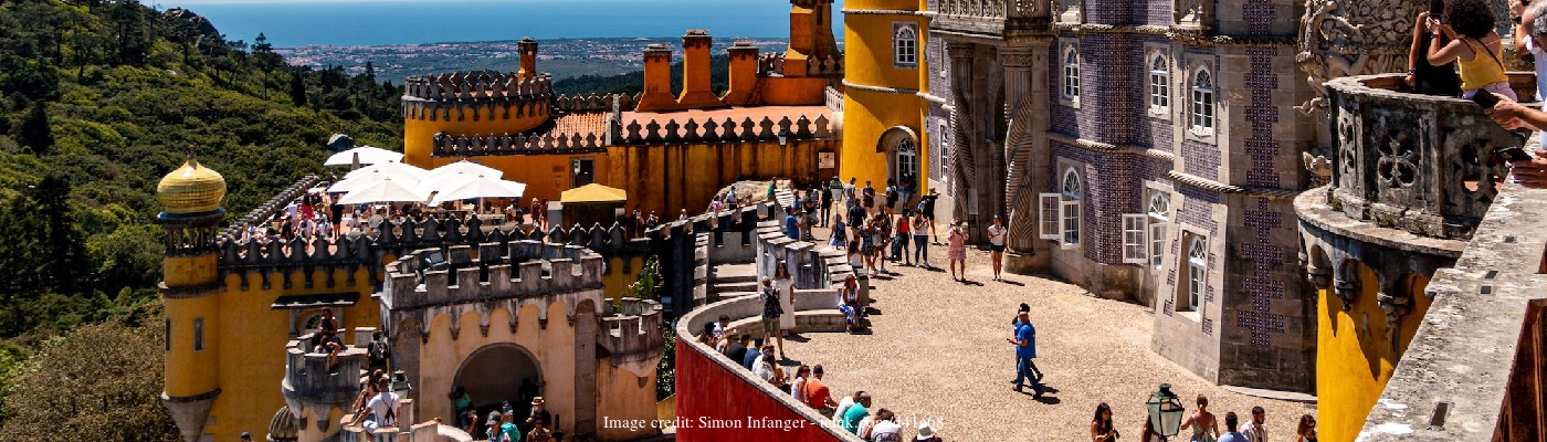 - Explore the famous and eccentric Pena Palace, a colourful Romanticist castle located atop a hill above the town of Sintra and former home to the Portuguese royal family;