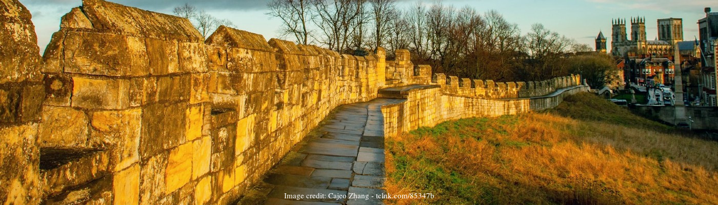 City Walls of YorkBuilt mainly in the 13th century and extended for 2 miles, York’s City Walls offer a splendid elevated walk around the city.