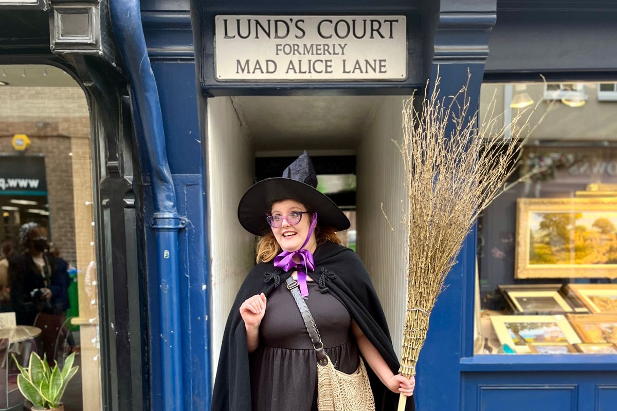 Meet your witch at the street sign "Whip-Ma-Whop-Ma-Gate"