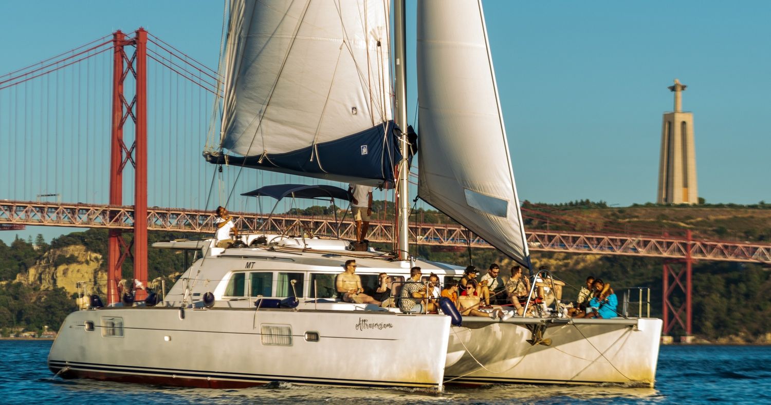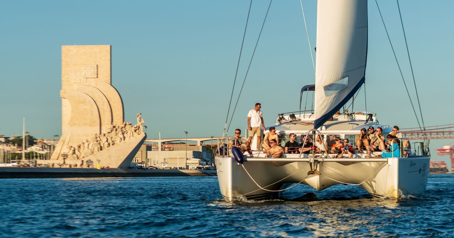 This exclusive tour offers breathtaking views of Lisbon’s most iconic landmarks from the tranquil waters of the Tagus River. Our catamaran features a spacious interior lounge with panoramic views, a covered outdoor seating area, and front nets where you can relax and soak up the sun.