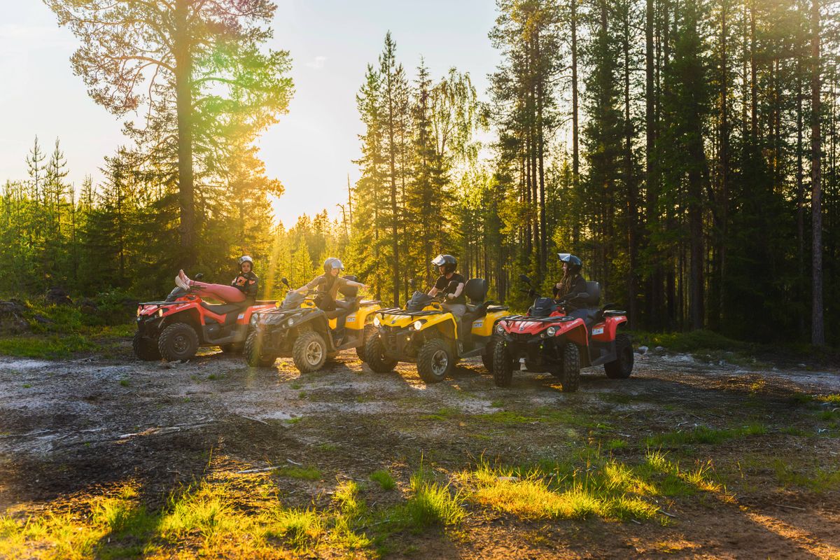 online reserviert haben.Wenn die Sonne knapp hinter dem Horizont verschwindet, leuchtet der Himmel um Mitternacht für einige magische Momente auf, bevor die Sonne wieder aufgeht. Unsere Quadtour mit der Mitternachtssonne führt Sie tief in den Wald, um dieses bezaubernde Spektakel aus erster Hand zu erleben!