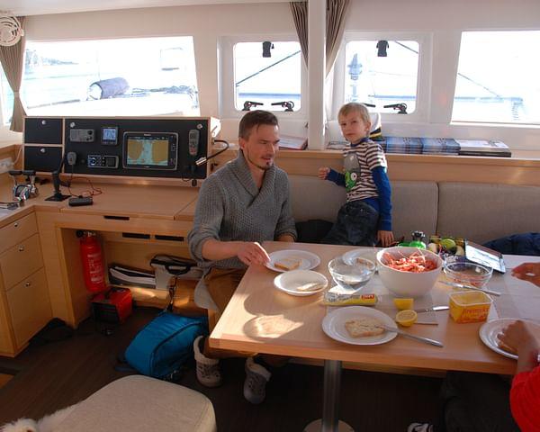 Unsere Katamarane sind ein wirklich schönes und komfortables Boot — sie sind für VIP- und komfortables Segeln konzipiert und ein perfekter Ort, um auf die magischen Nordlichter zu warten.