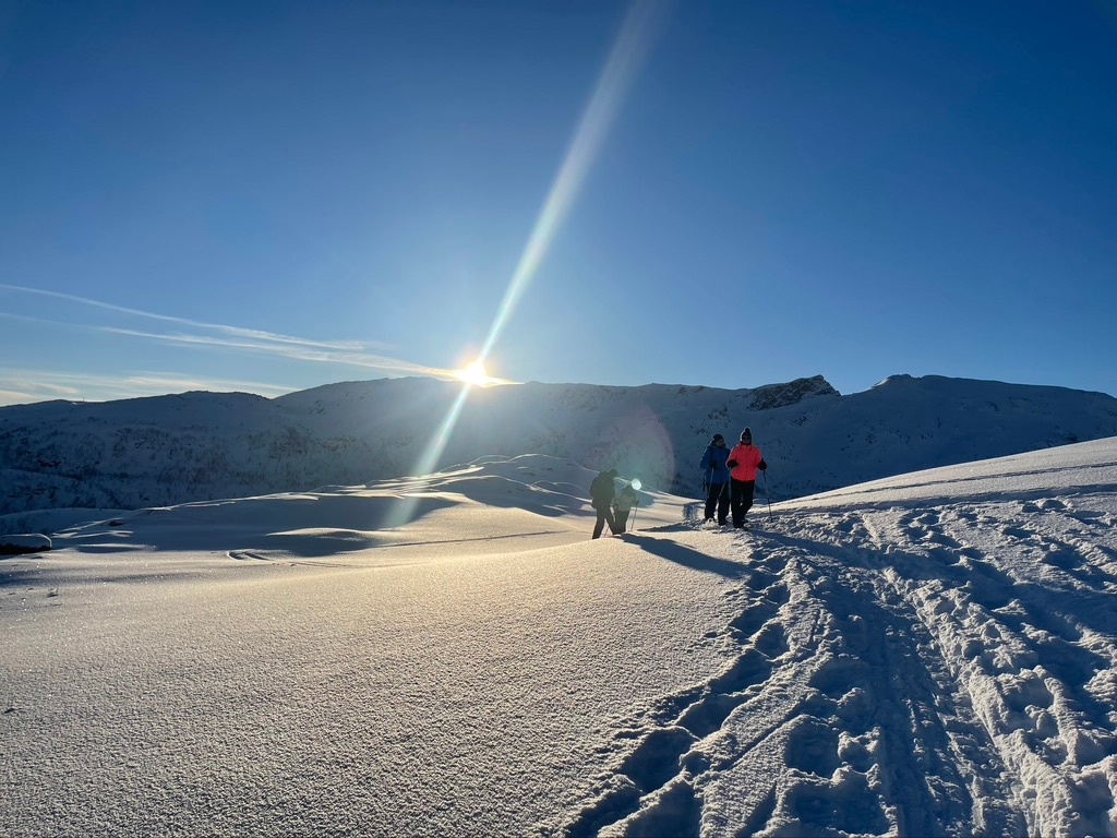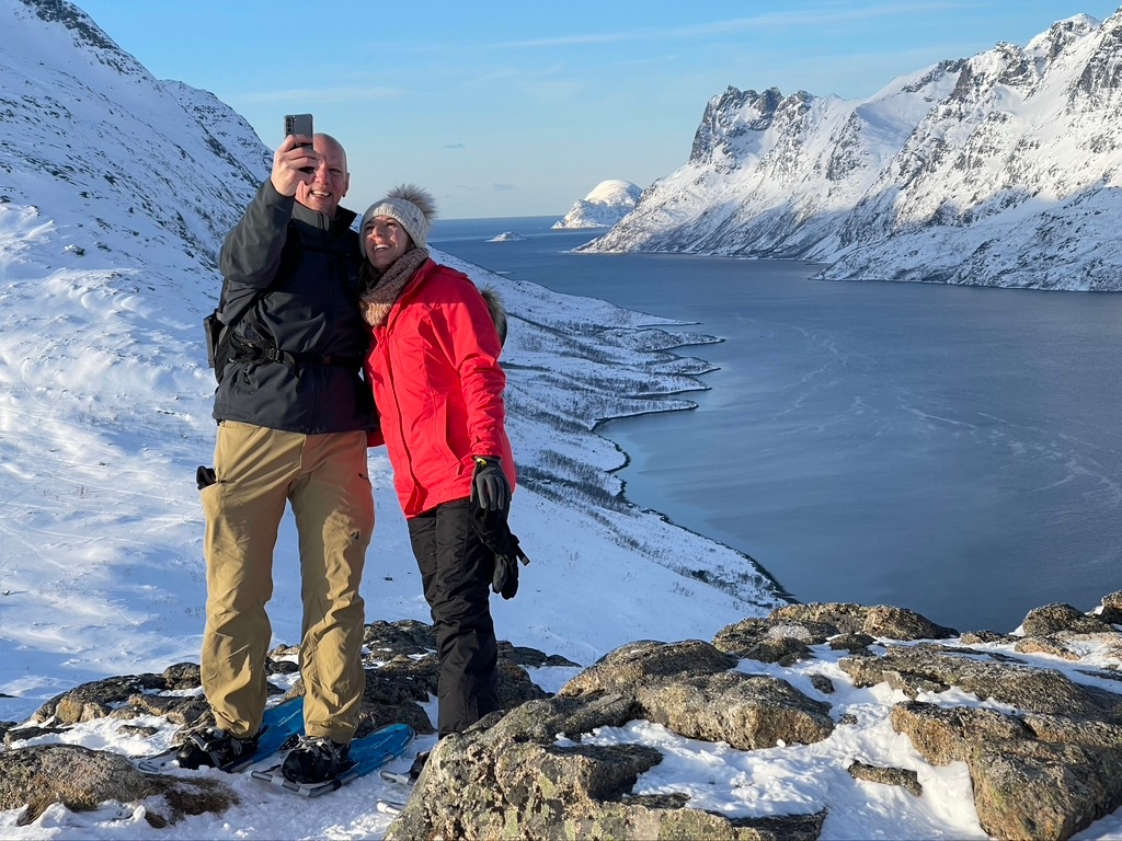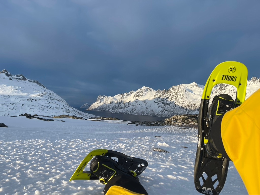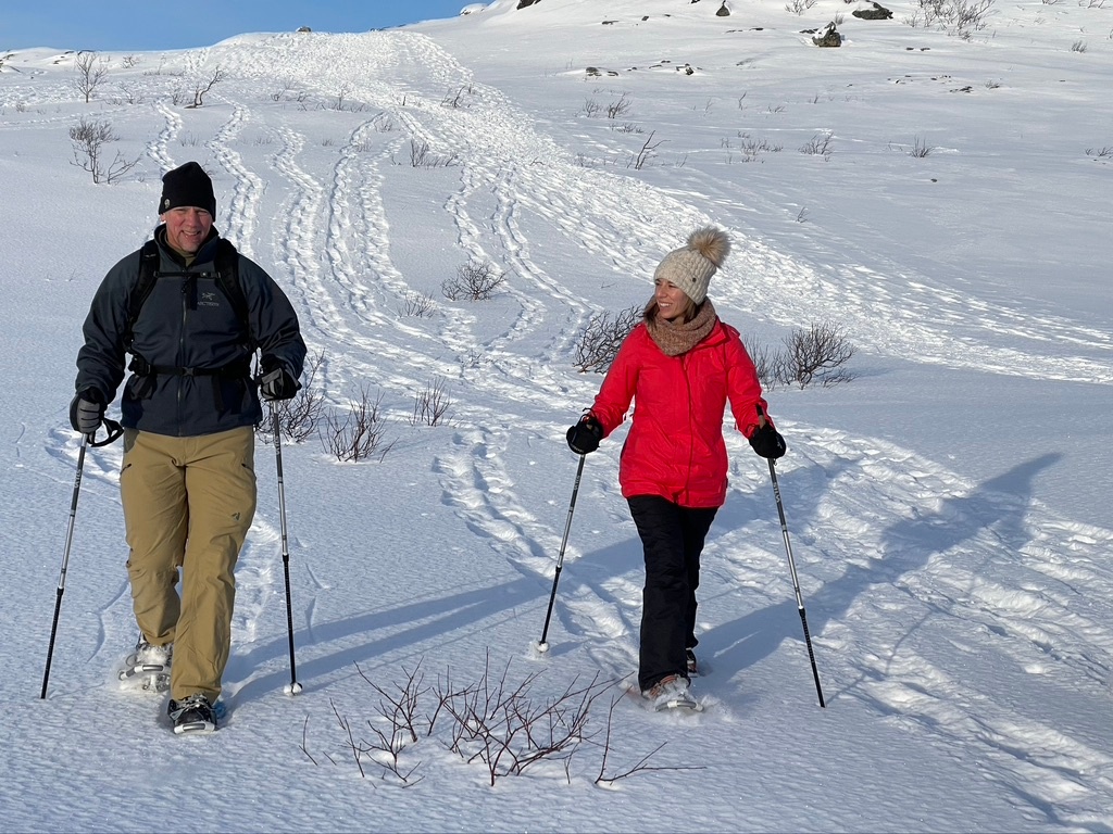 Ich liebe es zu wandern, aber fürchte dich vor knietiefem Schnee, dann probiere Schneeschuhwandern aus. In unserem brandneuen Mercedes V-Klasse Luxus-VIP-Auto (2023) oder unserem VIP Mercedes EQV, 100% elektrisch, 2024. Sie können auf den wunderschönen bewaldeten Pfaden von Tromsø draften