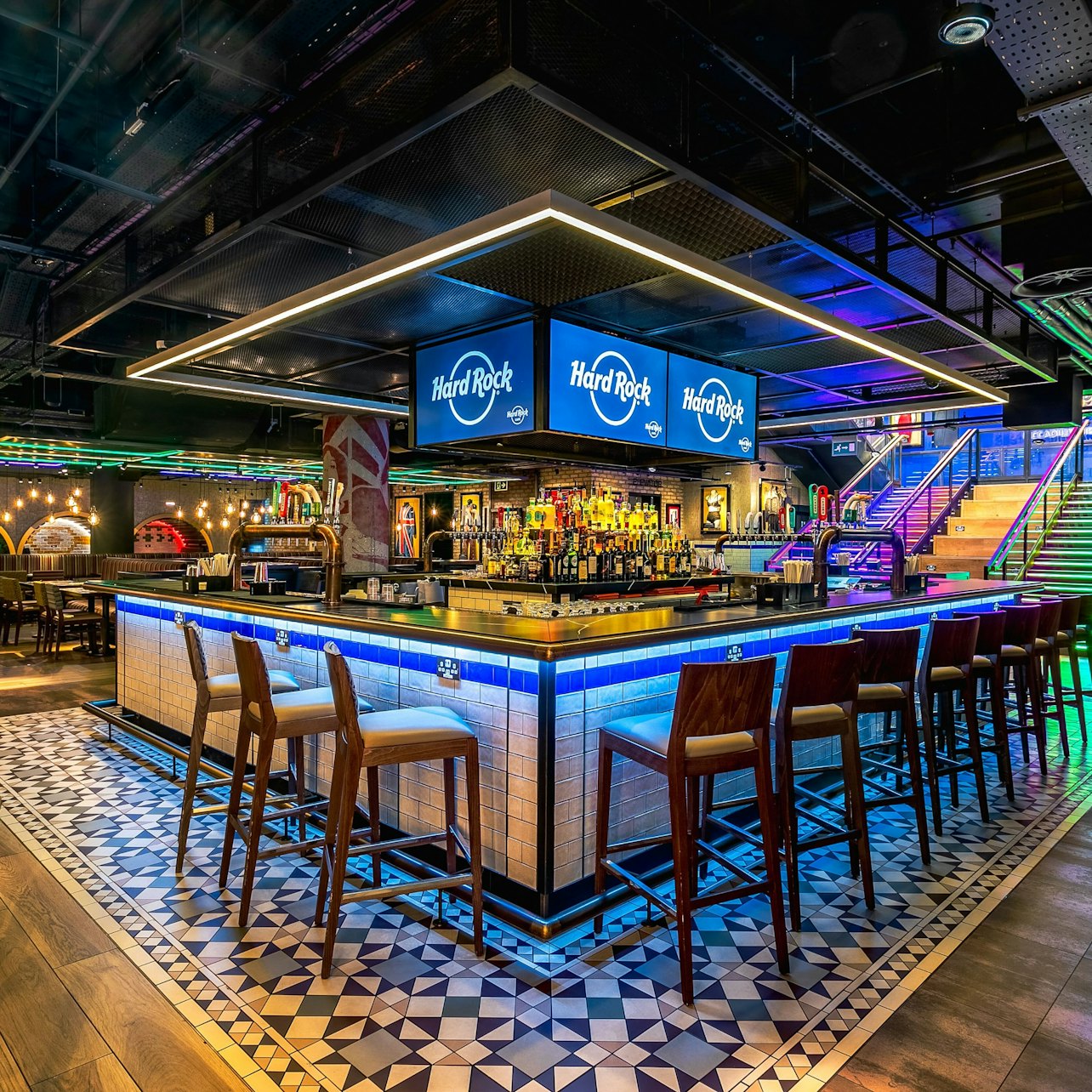 London gab der Welt Stars wie Queen, Led Zeppelin und die Rolling Stones. Gibt es einen besseren Ort, um dieses musikalische Erbe zu feiern als das weltberühmte Hard Rock Cafe des Piccadilly Circus? Während Sie von unbezahlbaren britischen und internationalen Rock'n'Roll-Erinnerungsstücken umgeben sind, sollten Sie den Original Legendary® Burger probieren — ein Stück Amerika, das mit einem Black Angus-Steak-Burger, geräuchertem Speck, Cheddar-Käse, Blattsalat, weingereiften Tomaten und einem knusprigen Zwiebelring serviert wird. Ein knuspriges, erfrischendes Erfrischungsgetränk ist ebenfalls enthalten!