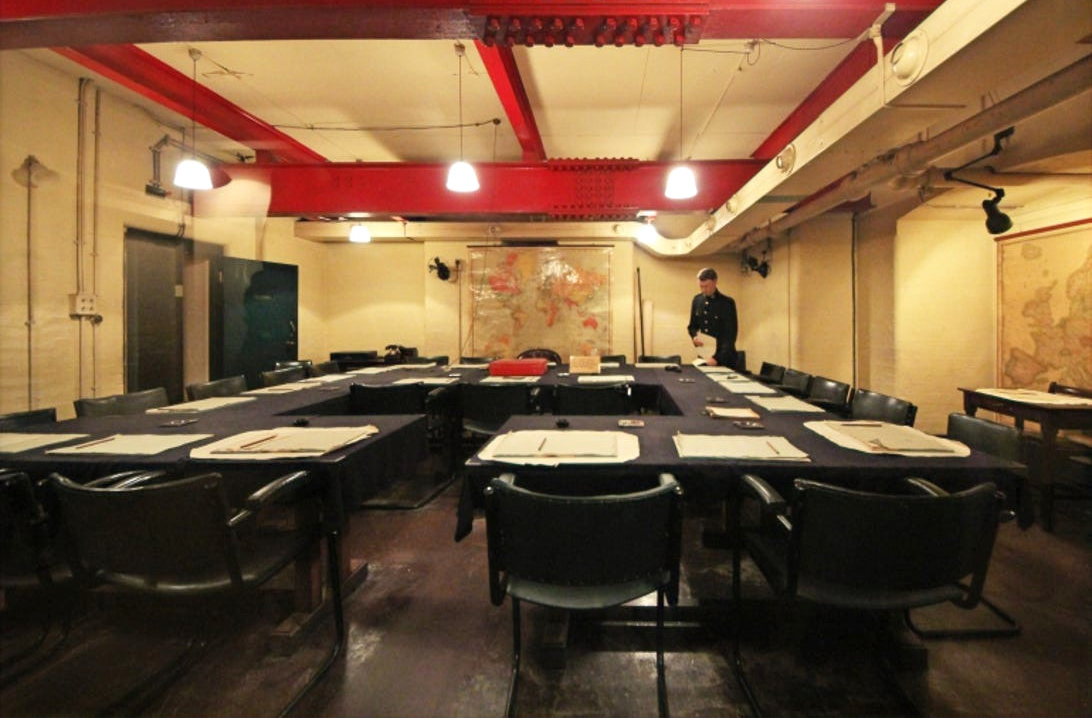 Durchstreifen Sie mit Ihrem privaten Reiseleiter die streng geheimen Korridore. Tauchen Sie ein in die Atmosphäre eines Kriegsraumes des Kabinetts, in dem die getroffenen Entscheidungen zum Sieg... oder zur Katastrophe führen könnten. Zeichne den Verlauf des Krieges in einem Kartenraum auf, der seit 1945 unberührt ist