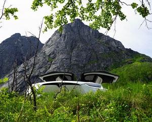 Conducimos entre hermosas montañas y contamos un poco de historia sobre cómo los campesinos noruegos experimentan la naturaleza.