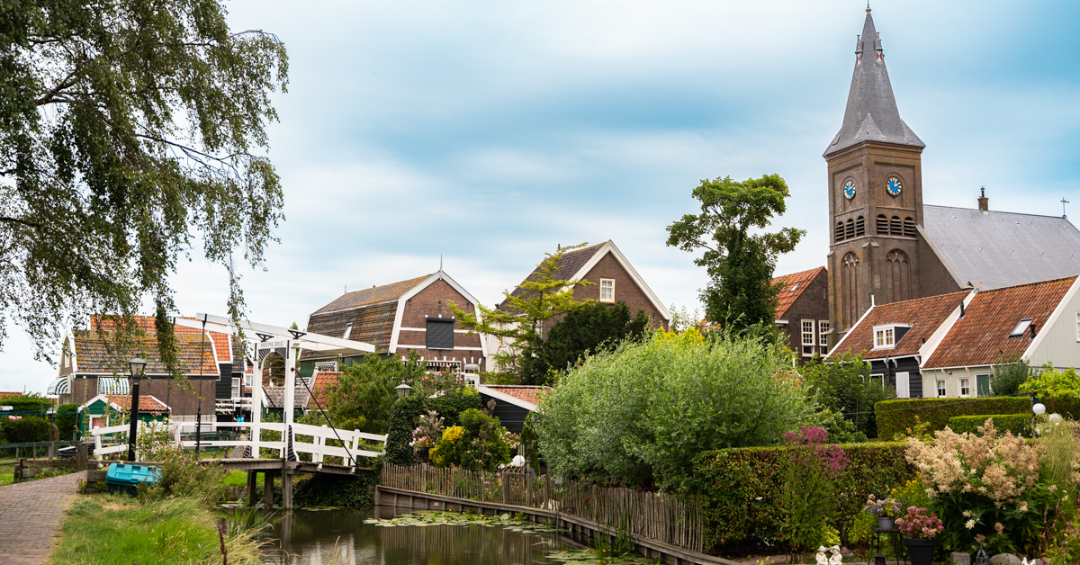 .Su última parada en el campo es Marken, un pueblo de libros de cuentos con acogedoras casas de madera, un pintoresco puerto pesquero y una iglesia protestante tradicional. Es un destino tranquilo y auténtico donde la herencia holandesa está