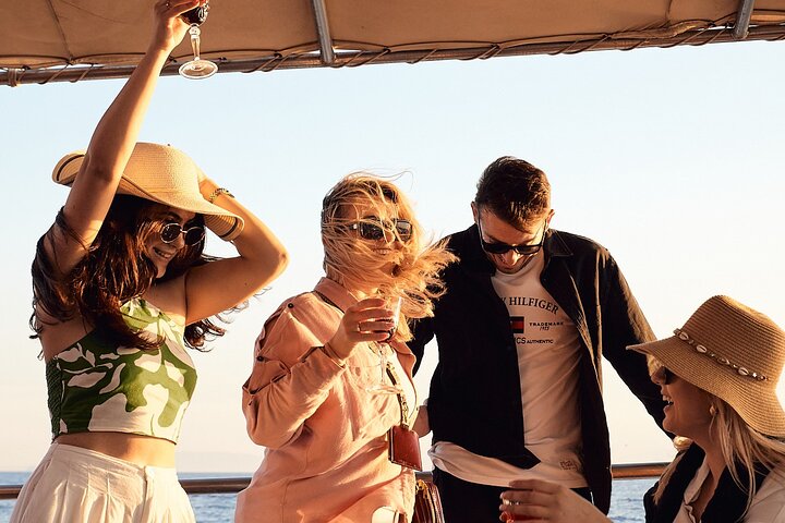 Suba a bordo de nuestro crucero al atardecer por la Riviera de Atenas para disfrutar de una noche inolvidable de relajación y belleza. Mientras el sol se oculta en el horizonte, sumérgete en el impresionante paisaje de la costa ateniense, donde cada momento es un recuerdo perfecto que espera ser capturado. Disfrute de una selección de deliciosos aperitivos y bebidas refrescantes mientras navega por las aguas cristalinas. Con una parada para nadar y la emoción de saltar del barco hacia el refrescante mar, este crucero ofrece más que solo visitas turísticas. Siente la suave brisa en tu cabello y deja que el sonido de las olas sea tu banda sonora. Este crucero promete ser una experiencia verdaderamente mágica. No pierdas la oportunidad de crear recuerdos inolvidables en nuestro crucero al atardecer. ¡Reserva ahora y deja que comience la aventura!