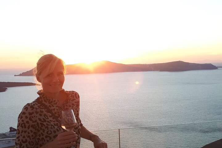 Si eliges la opción de puesta de sol, disfruta de tu día libre antes de que te recojan en tu lugar preferido de la isla. Viaje cómodamente a Oia y sea testigo de una de las puestas de sol más famosas del mundo, mientras el sol se pone sobre el mar Egeo desde un
