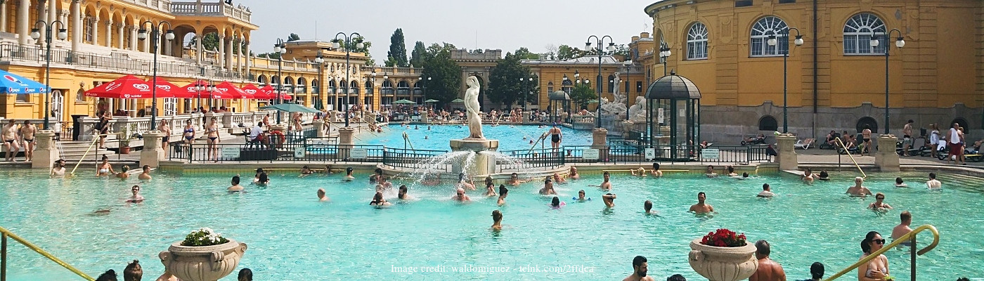 Széchenyi Este inmenso complejo de baños medicinales de estilo neobarroco, el más grande de su tipo en Europa, se abastece de dos fuentes termales.