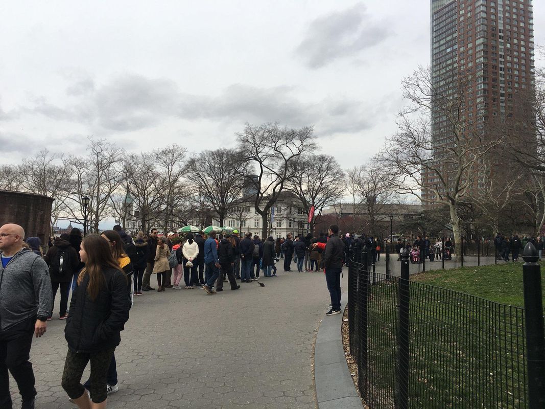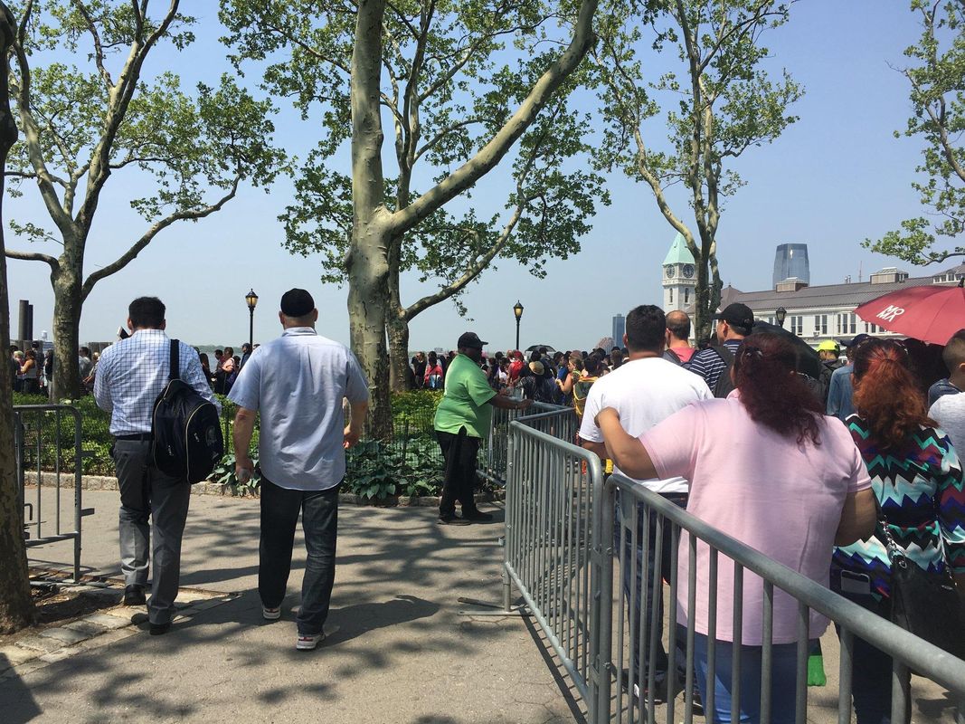 Reúnase frente a Starbucks en 24 State Street, frente a Battery Park. Tenga en cuenta que 24 State Street también se conoce como «One Battery Park Plaza». «Su guía llevará un uniforme amarillo y se encontrará con usted en la plaza frente a Starbucks. No entres a Battery Park ni vayas a la taquilla de la Estatua de la Libertad, ya que no tienen tus entradas. Si coges el metro hasta el punto de encuentro, toma el tren R hasta la estación de Whitehall Street, el tren 4 o 5 hasta la estación de Bowling Green o el tren 1 hasta la estación de South Ferry